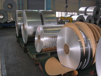 鋁帶(Aluminium strip/Aluminum strip)的原料是純鋁或鋁合金鑄軋鋁卷、熱軋鋁卷,經冷軋機軋制為不同厚度、寬度的薄板鋁卷,再根據用途,經縱剪機縱向分切為不同寬度的鋁帶。